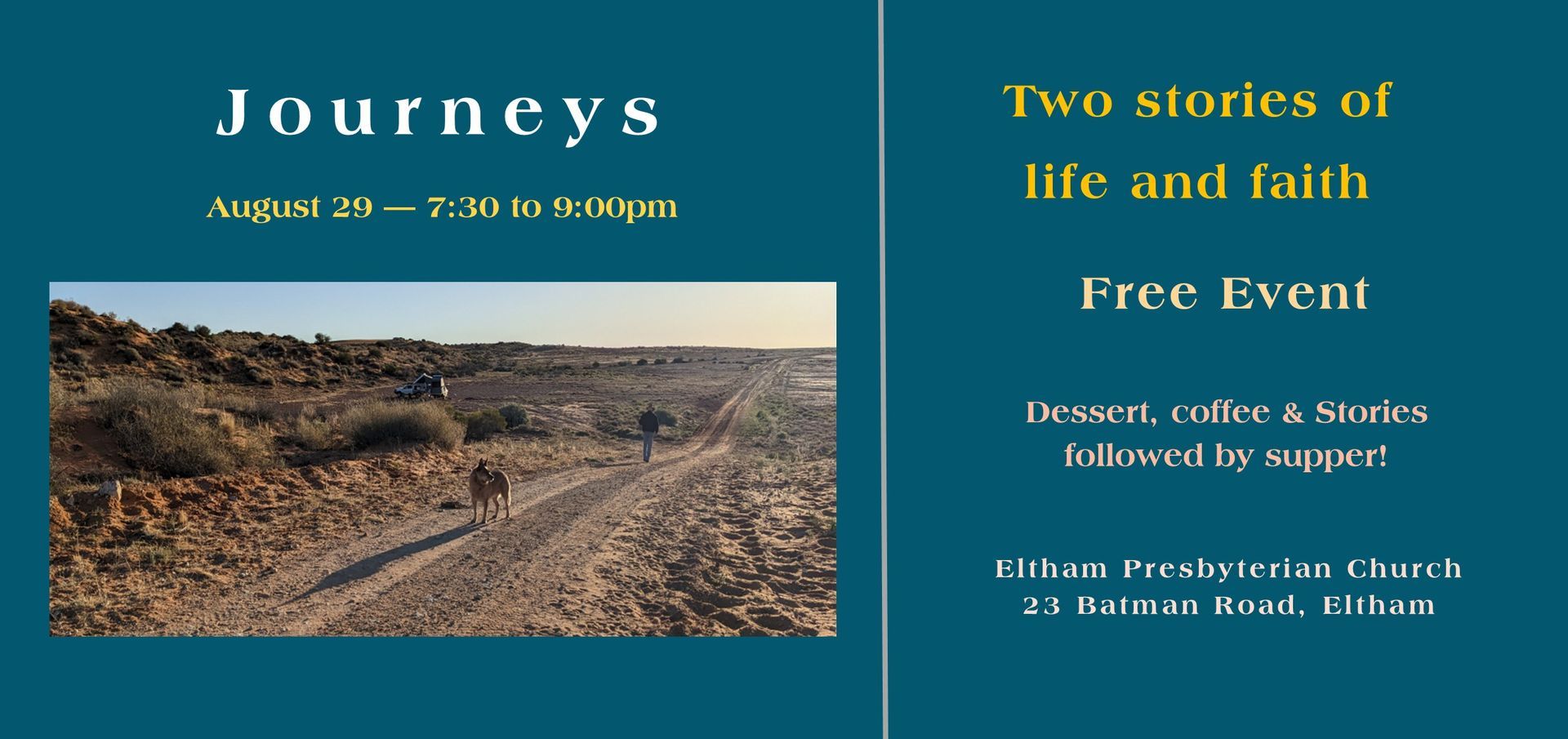 Come and enjoy dinner together. We gather on Mondays to get to know each other and learn from God's Word. Dinner is at 6:15pm and we finish by 8:00pm.